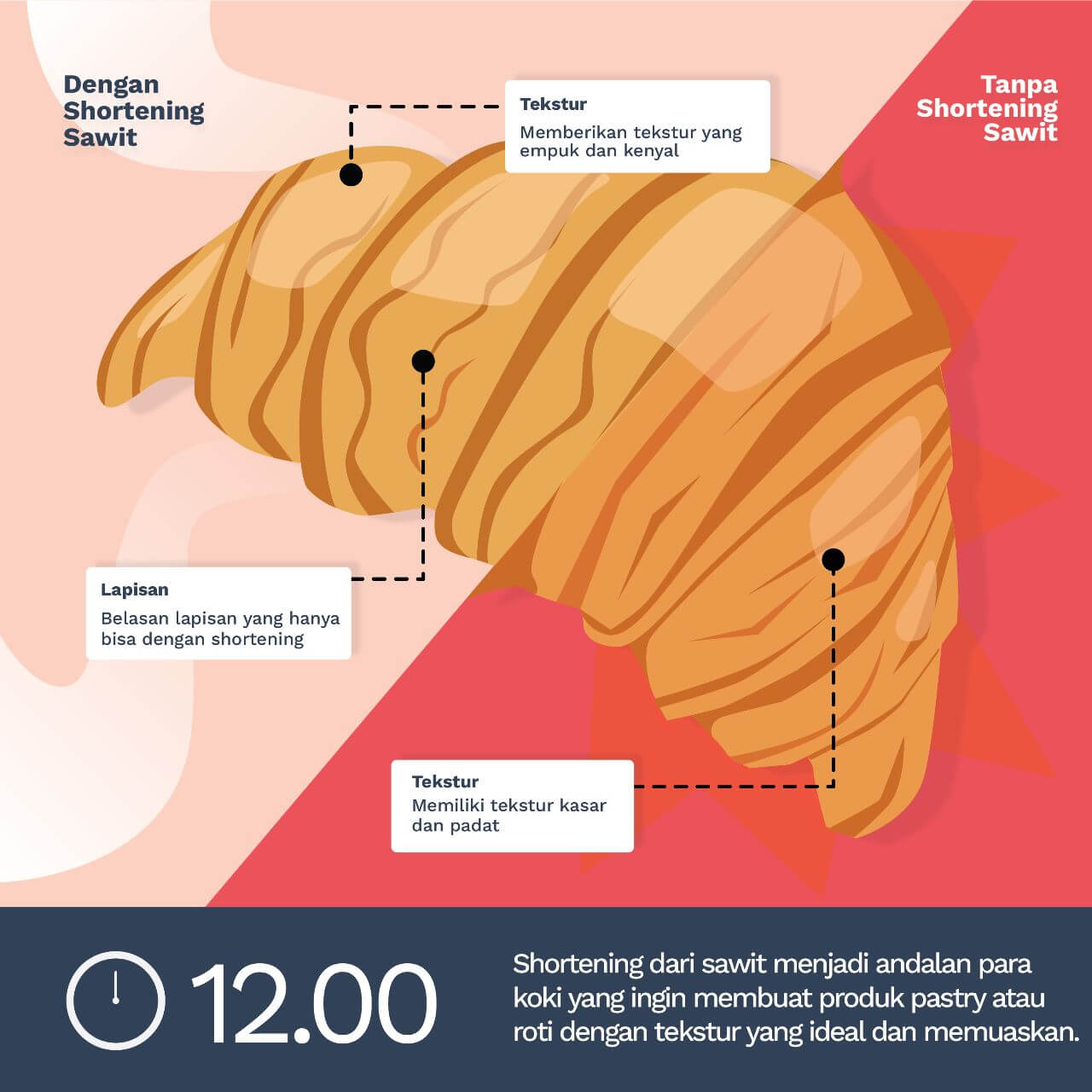 Siang Hari, Jam 12 – Shortening sawit menjadi andalan para koki yang ingin membuat produk pastry atau roti dengan tekstur yang ideal dan memuaskan.