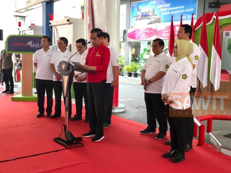 Presiden Joko Widodo meresmikan program mandatori biodiesel campuran 30% (B30) yang akan diimplementasikan mulai awal tahun 202. Peresmian program B30 berlangsung di SPBU milik Pertamina di Jalan MT Haryono, Jakarta, Senin (23/12/2019.