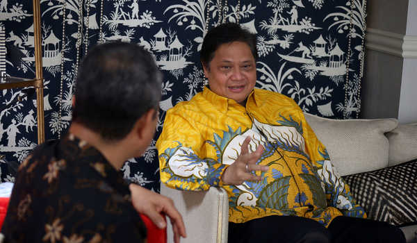 Ketua umum Partai Golkar yang juga Menteri Kordinator Perekonomian Airlangga Hartarto saat wawancara khusus dengan Berita Satu Media Holdings, di Jakarta, Minggu (10/11/2019). SP/Joanito De Saojoao.