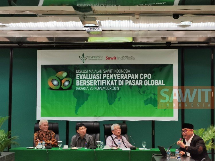 Kalangan produsen menuntut janji penyerapan minyak sawit berkelanjutan atau Certified Sustainable Palm Oil (CSPO) di pasar global. Setiap tahun, penjualan CSPO di bawah 50% yang berakibat oversuplai CSPO dan tidak adanya premium price bagi konsumen. Walaupun, produsen sudah mampu memenuhi prinsip dan kriteria sertifikat berkelanjutan sesuai permintaan...