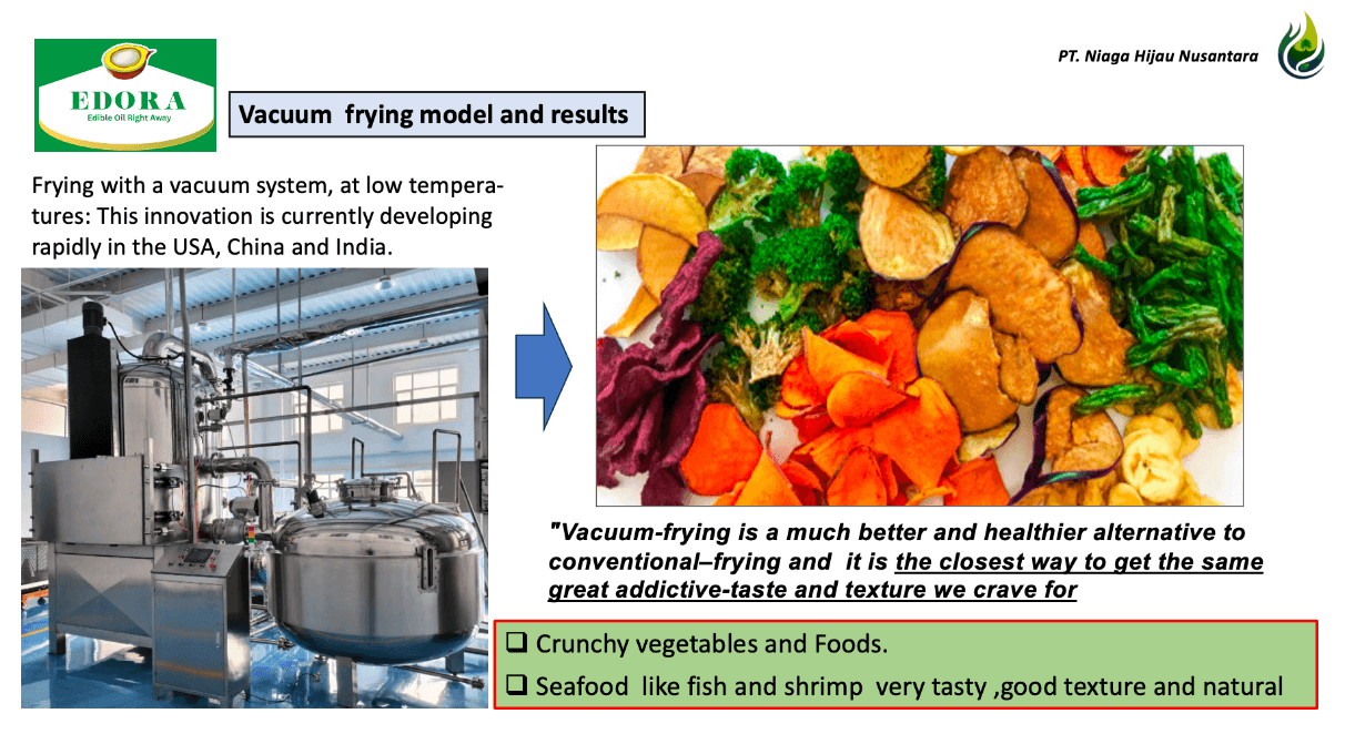 Meski penggorengan biasa masih menjadi pilihan utama banyak orang, penggorengan vakum menawarkan alternatif yang lebih sehat dan tetap mempertahankan cita rasa serta tekstur yang diinginkan. Penggunaan teknolgi ini diharapkan dapat menjadi solusi jangka panjang bagi industri makanan dalam menciptakan produk yang lebih sehat dan aman dikonsumsi.